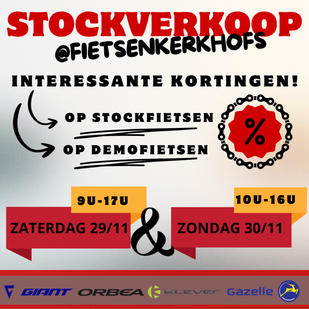 Het laatste weekend van november doen we bij Fietsen Kerkhofs een stockverkoop! Kortingen van 30 tot zelfs 40% op stockmodellen en demofietsen! Wees erbij! Zowel zaterdag als zondag open!